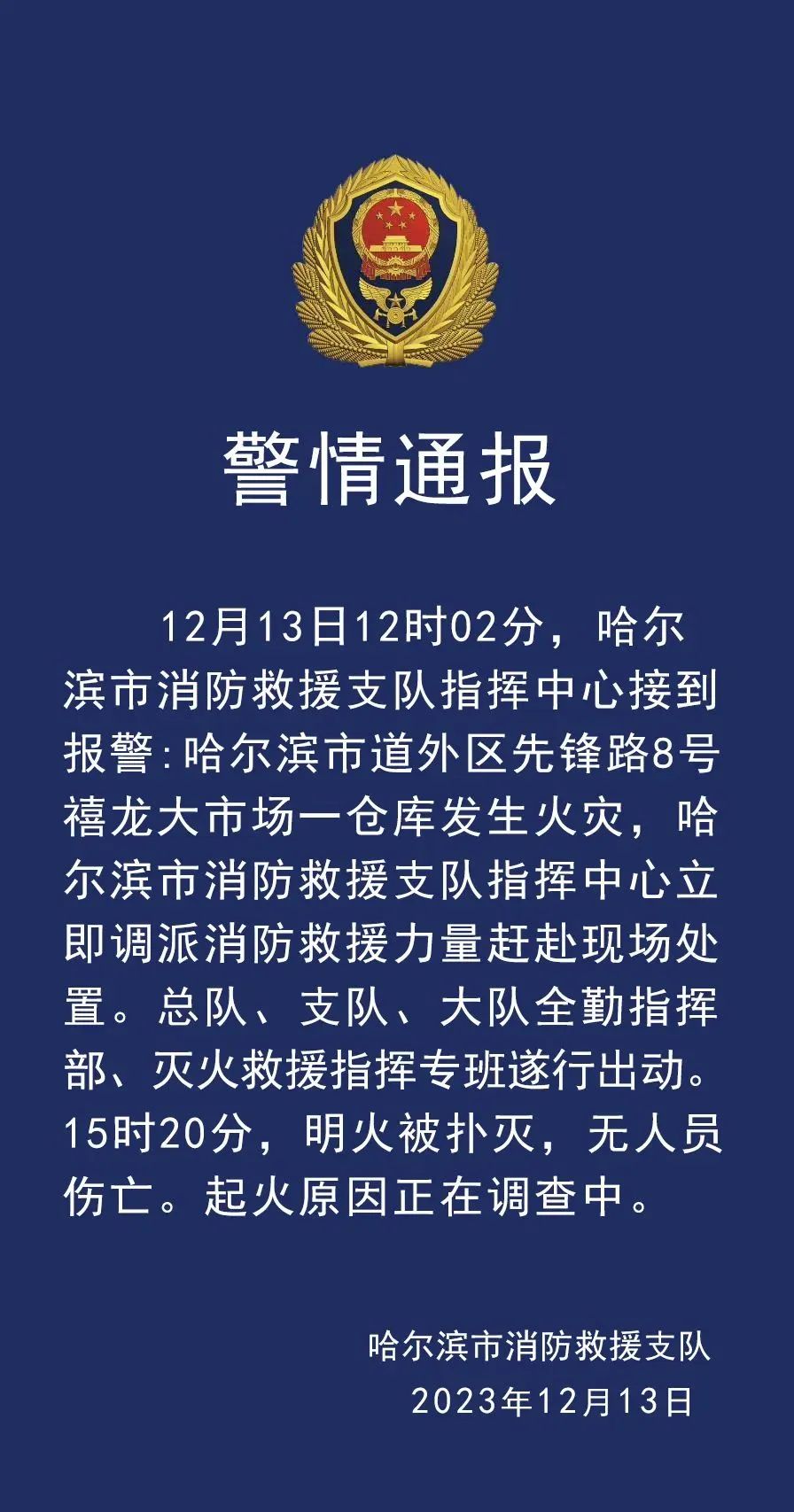 哈尔滨市消防救援支队指挥中心
