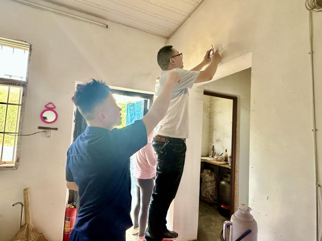 三装三配就是要列出专项经费,根据特殊群体的实际情况为他们安装独立式感烟探测器、一键报警联网烟感探测器、监控摄像头,配置灭火器、防烟面罩和应急手电等器材,并教他们怎么使用。